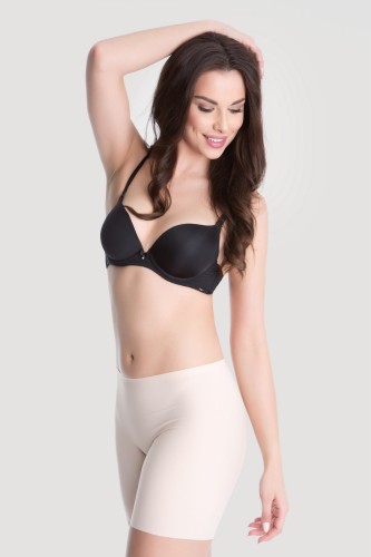 W tych komfortowych, gładkich bermudach w naturalnym odcieniu beżu poczujesz się szczególnie komfortowo podczas ciepłych dni wiosny i lata. To bezszwowy model o właściwościach lekko korygujących i silnie wygładzających dolne partie sylwetki. Dzięki dłuższym nogawkom zapobiegnie bolesnym i nieprzyjemnym obtarciom ud. Dla Twojej wygody posiada higieniczną, bawełnianą wstawkę. Wybierz rozmiar bermudów noszony na co dzień. W naszej ofercie znajdziesz je także w czarnej wersji.