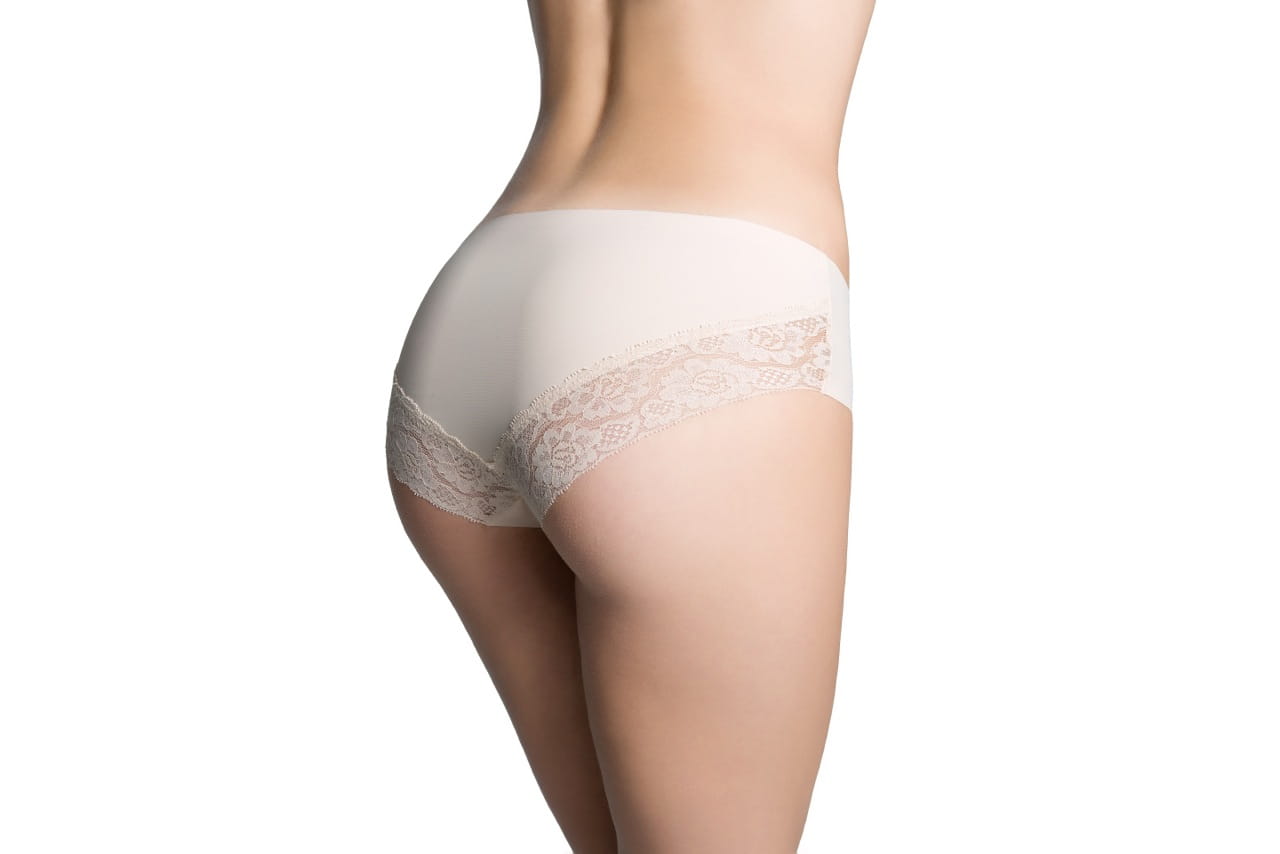 Model CHEEKIE to efektowne połączenie gładkiego przodu i pasującego tyłu, urozmaiconego dodatkowo ozdobną koronką ton w ton, umieszczoną na dole pośladków. Figi wykończone są w przełomowej technologii INVISIBLE-LINE®, która gwarantuje brak widocznych linii nawet pod bardzo dopasowanymi ubraniami. W kroku wszyto dyskretną, bawełnianą wstawkę higieniczną. Figi CHEEKIE oferowane są w wyborze podstawowych i sezonowych kolorów, w rozmiarach S - XL.