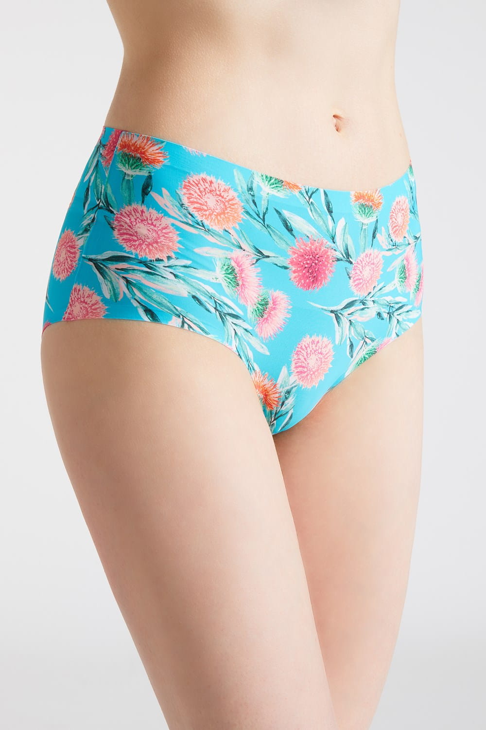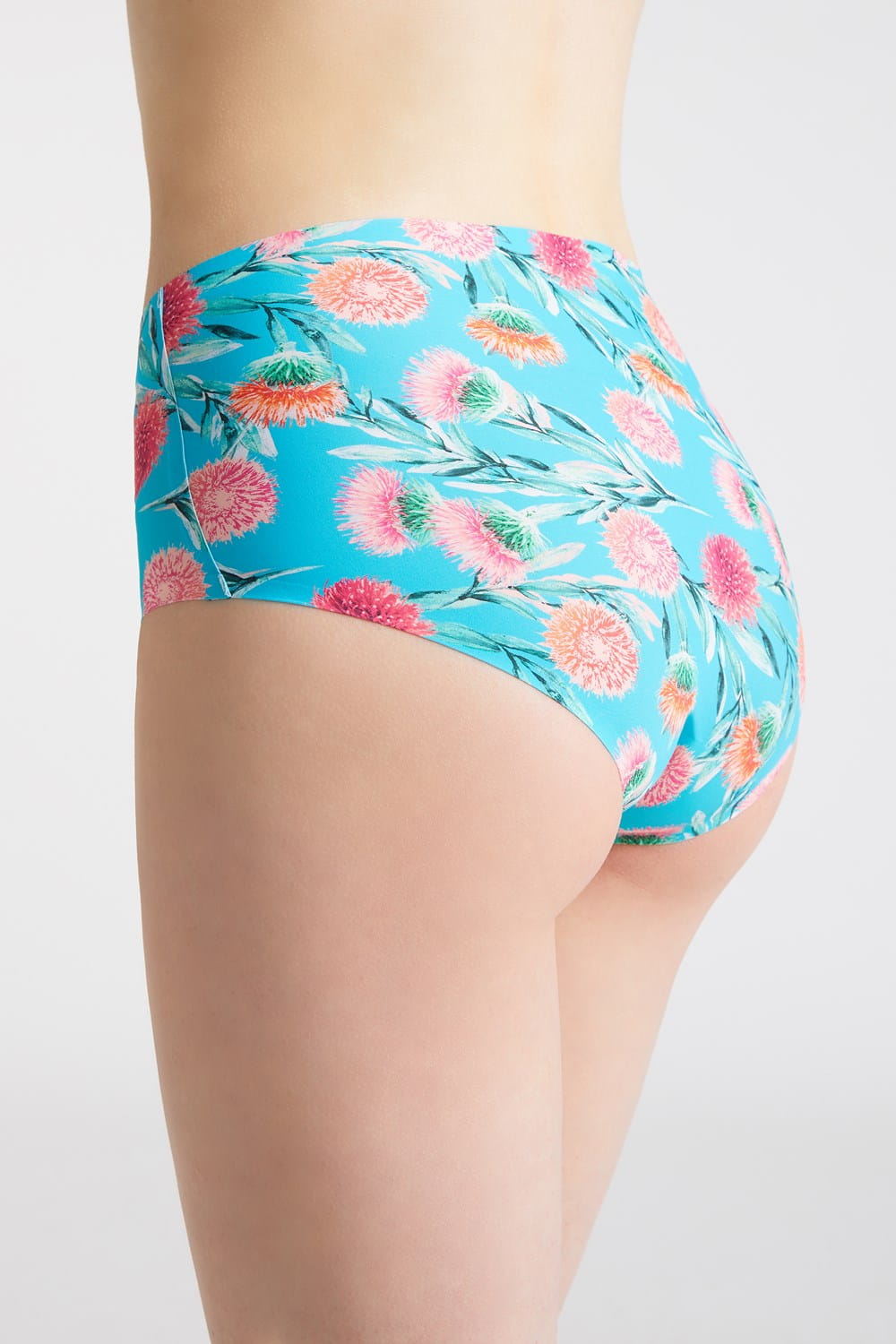 Wysokie, przyciągające wzrok figi Spikes maxi to kolejna, nowa propozycja w sezonie wiosna-lato 2021. Uszyto je z lekkiej, elastycznej dzianiny zadrukowanej w motywy kolorowych kwiatów i liści ostów, umieszczonych na niebieskim tle. Figi wykonane są w bezszwowej technologii INVISIBLE LINE® i mają nieco wyższy stan oraz szersze boki. W kroku wszyto higieniczną, bawełnianą wstawkę, która dba o kobiecą higienę i gwarantuje wysoki komfort noszenia. Figi dostępne są w rozmiarach S do XL, także w niższej wersji (SPIKES)