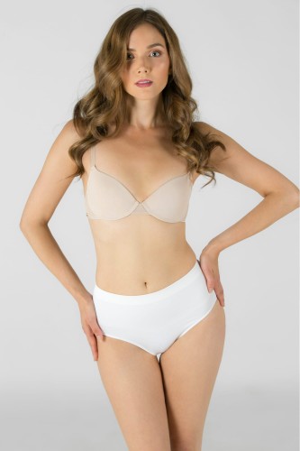 Te dyskretne i komfortowe, białe figi wyszczuplające pozwolą Ci uzyskać szybkie efekty redukcji obwodu talii, wymodelowania bioder i uniesienia pośladków. Jeżeli masz problem z nadmiarem ciała lub skóry w dolnej części brzucha, specjalny, wzmocniony panel dzianiny pozwoli Ci go spłaszczyć i zredukować. Higieniczna wkładka w kroku doskonale sprawdzi się podczas noszenia. Dzięki bezszwowej technologii wykonania figi nie będą odznaczać się nawet pod dopasowanym strojem.